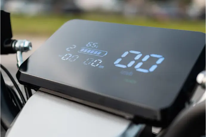 Elegante e de fácil leitura o painel de instrumentos LCD exibe as informações de forma clara e de fácil leitura, como a velocidade, carga da bateria, quilometragem percorrida, entre outras informações relevantes para uma condução segura e eficiente.